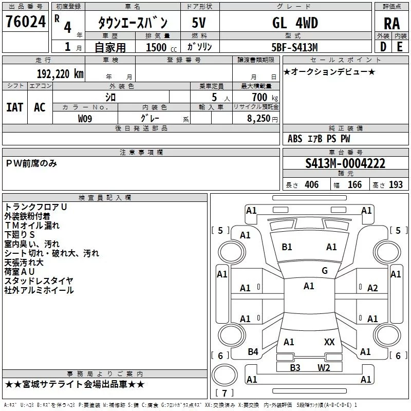 Toyota TOWN ACE VAN с аукциона Японии TAA Tohoku лот № 76024