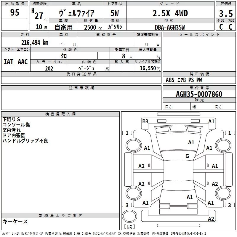Toyota VELLFIRE с аукциона Японии TAA Tohoku лот № 95