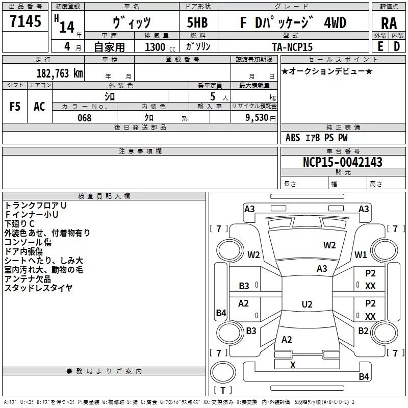Toyota VITZ с аукциона Японии TAA Tohoku лот № 7145