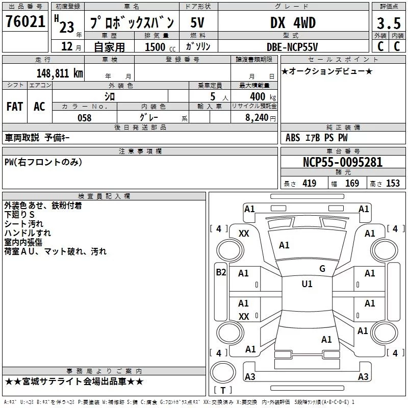 Toyota PROBOX с аукциона Японии TAA Tohoku лот № 76021