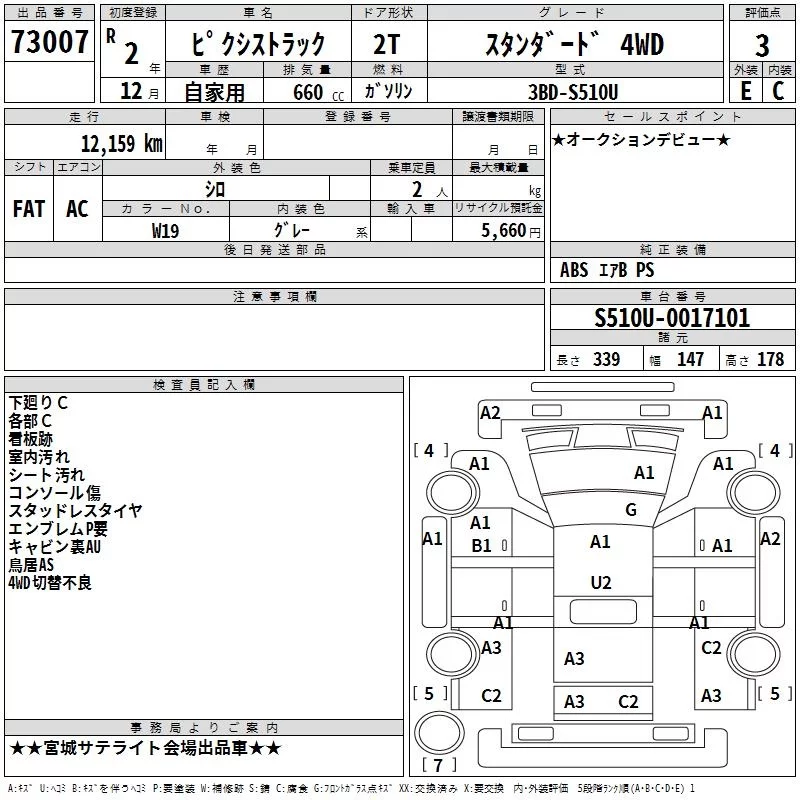 Toyota PIXIS TRUCK с аукциона Японии TAA Tohoku лот № 73007