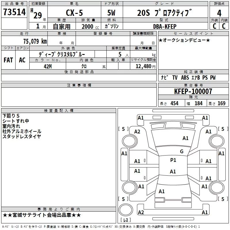 Mazda CX-5 с аукциона Японии TAA Tohoku лот № 73514