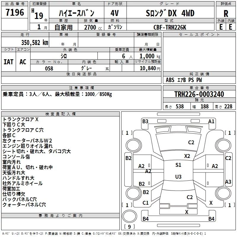 Toyota HIACE VAN с аукциона Японии TAA Tohoku лот № 7196