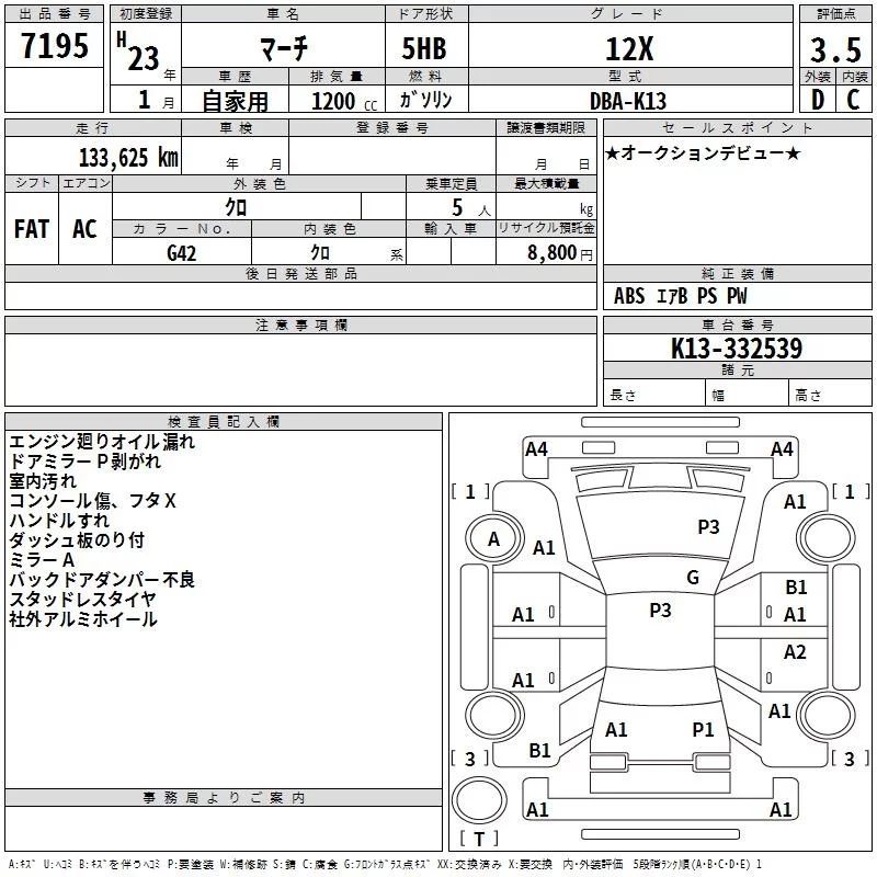 Nissan MARCH с аукциона Японии TAA Tohoku лот № 7195