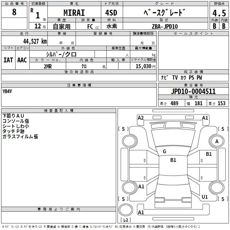 Toyota MIRAI с аукциона Японии TAA Chubu лот № 8