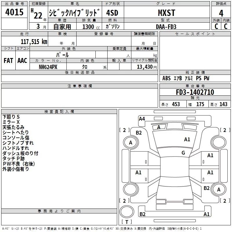 Honda CIVIC HYBRID с аукциона Японии TAA Chubu лот № 4015
