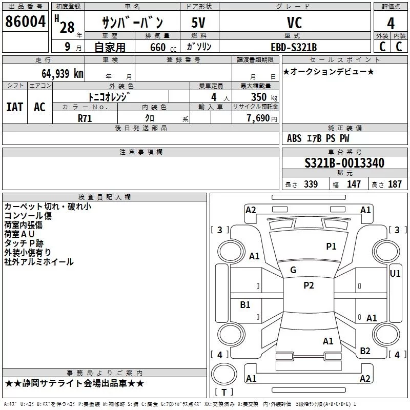 Subaru SAMBAR с аукциона Японии TAA Chubu лот № 86004