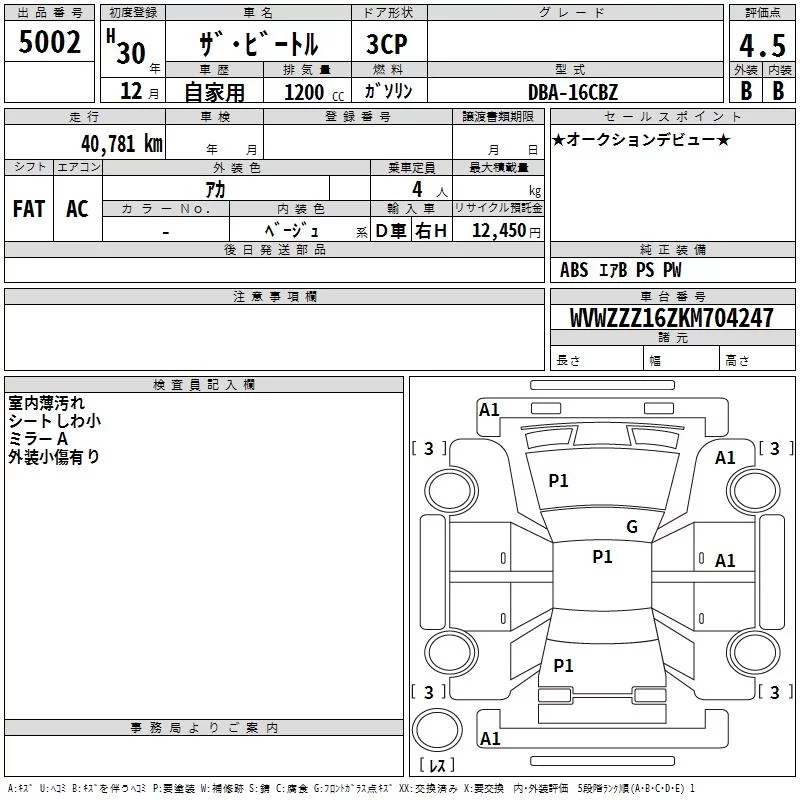 Volkswagen THE BEETLE с аукциона Японии TAA Chubu лот № 5002
