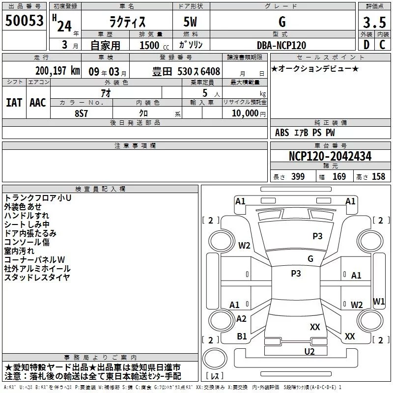 Toyota RACTIS с аукциона Японии TAA Chubu лот № 50053