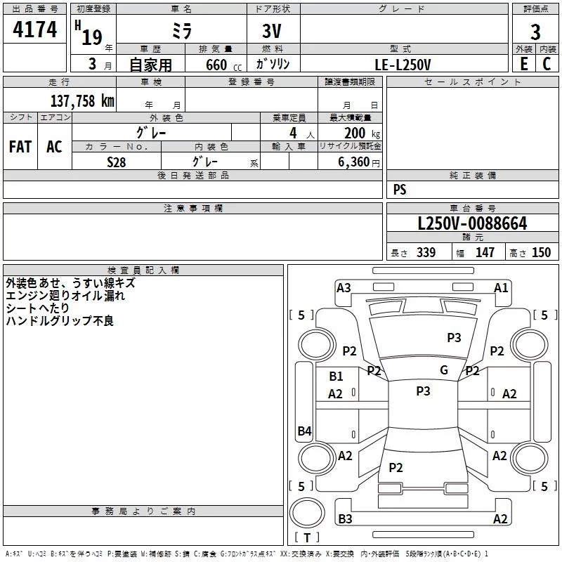 Daihatsu MIRA с аукциона Японии TAA Chubu лот № 4174