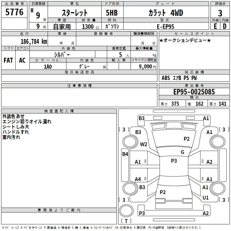 Toyota STARLET с аукциона Японии TAA Chubu лот № 5776