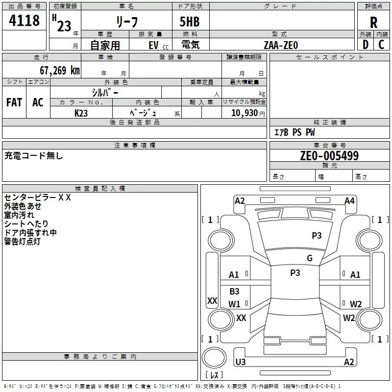 Nissan LEAF с аукциона Японии TAA Chubu лот № 4118
