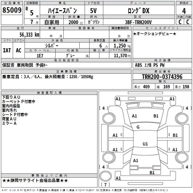 Toyota HIACE VAN с аукциона Японии TAA Chubu лот № 85009