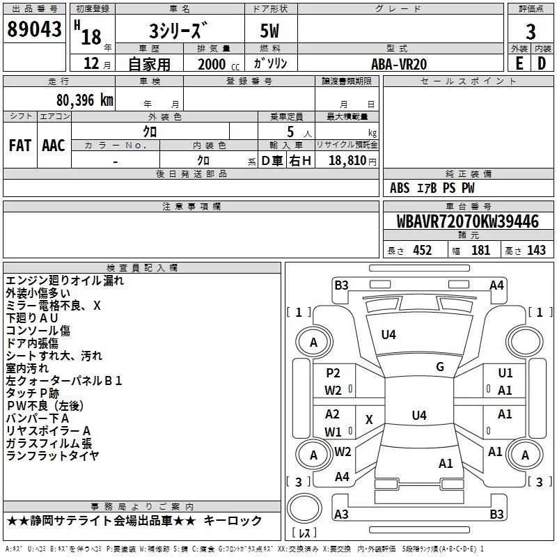 BMW 3-Series с аукциона Японии TAA Chubu лот № 89043