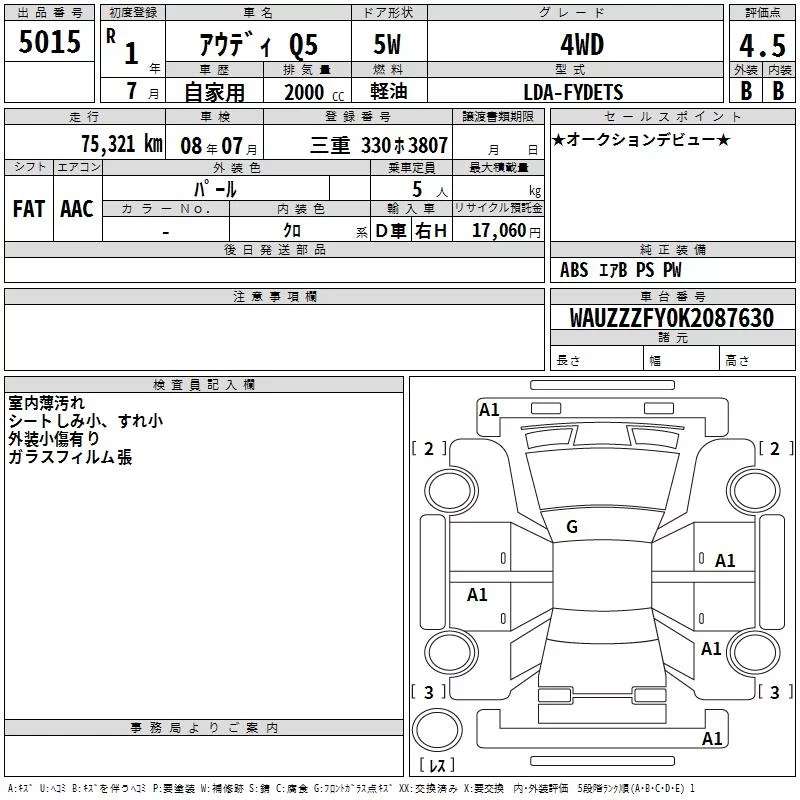 Audi Q5 с аукциона Японии TAA Chubu лот № 5015