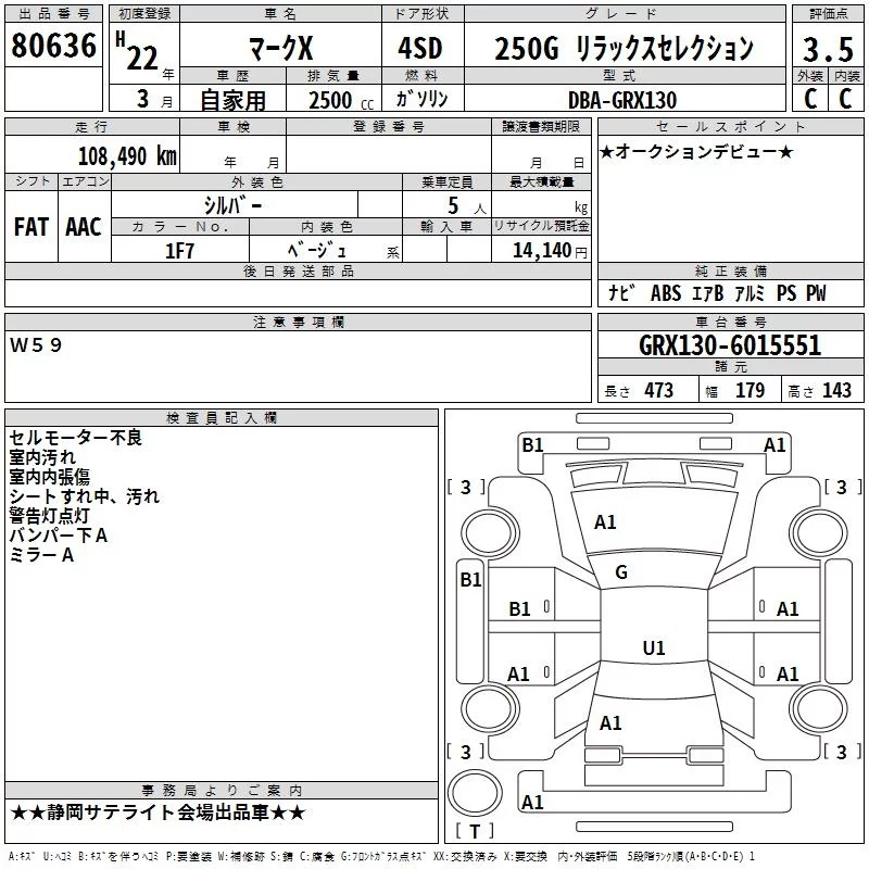 Toyota MARK X с аукциона Японии TAA Chubu лот № 80636