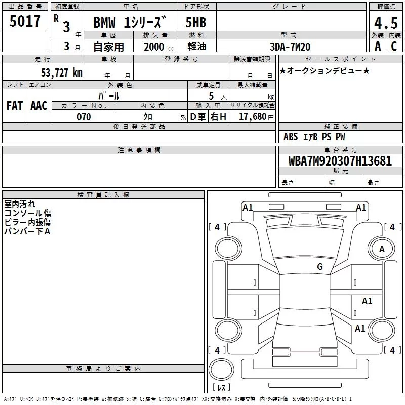 BMW 1-Series с аукциона Японии TAA Chubu лот № 5017