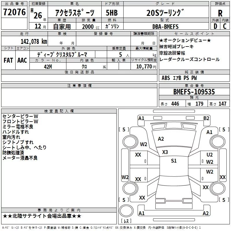 Mazda AXELA с аукциона Японии TAA Chubu лот № 72076
