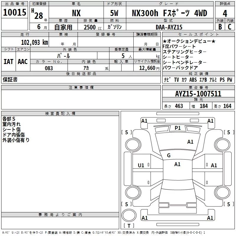 Lexus NX с аукциона Японии TAA Chubu лот № 10015