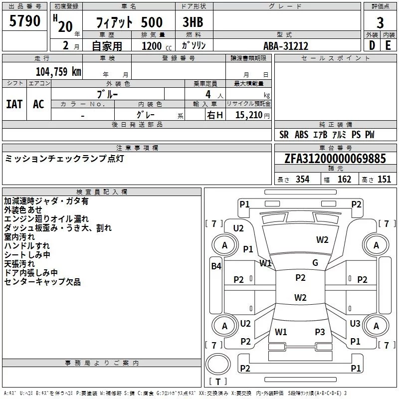 Fiat 500 с аукциона Японии TAA Chubu лот № 5790