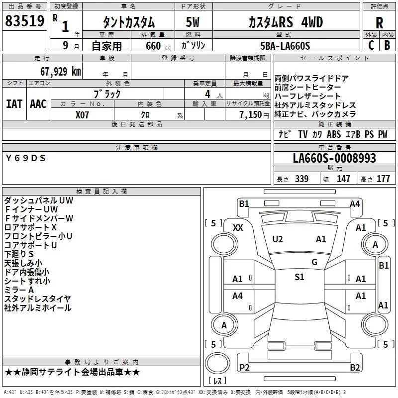 Daihatsu TANTO с аукциона Японии TAA Chubu лот № 83519