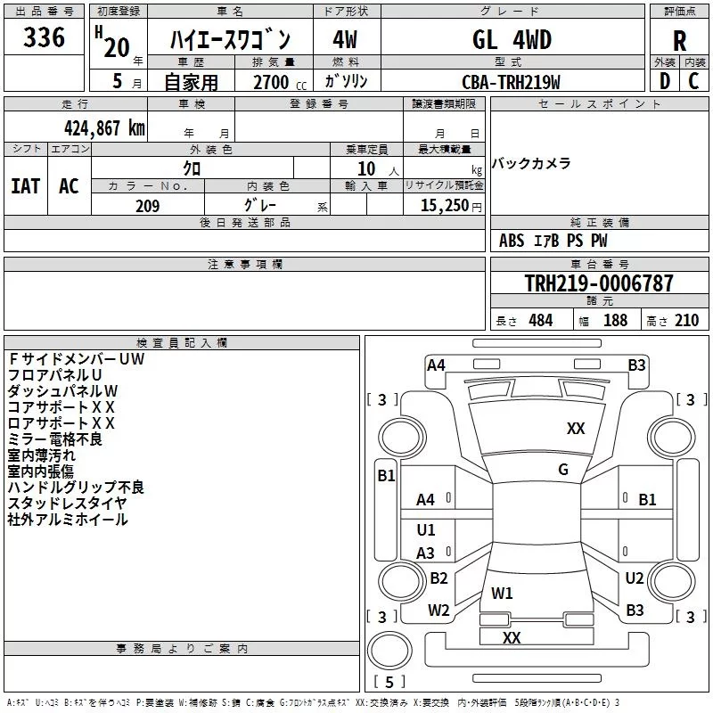 Toyota HIACE с аукциона Японии TAA Chubu лот № 336