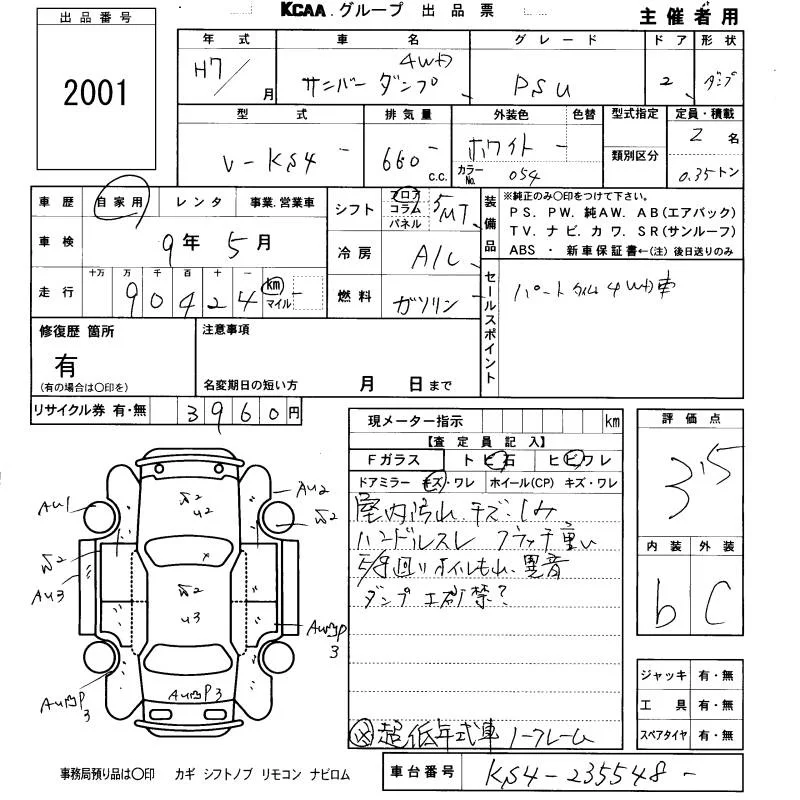 Subaru SAMBAR с аукциона Японии KCAA Fukuoka лот № 2001
