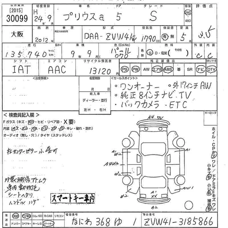 Toyota PRIUS ALPHA с аукциона Японии MIRIVE Osaka лот № 30099
