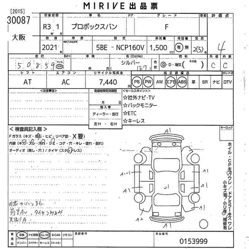 Toyota PROBOX с аукциона Японии MIRIVE Osaka лот № 30087