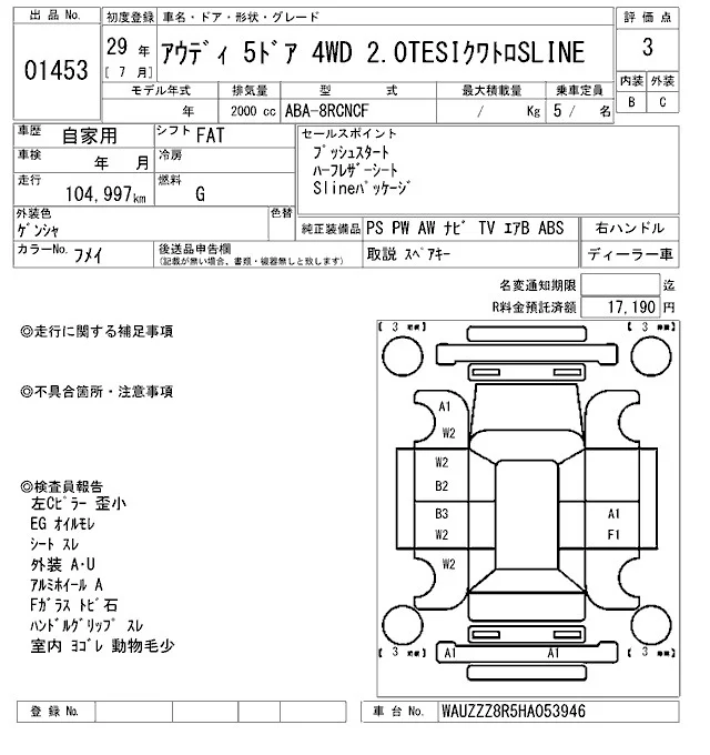 Audi Q5 с аукциона Японии ARAI Oyama лот № 1453