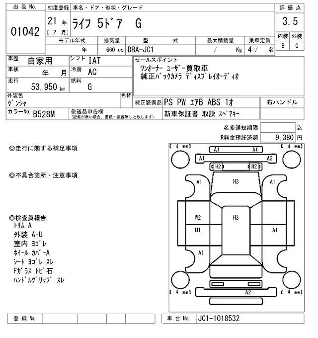 Honda LIFE с аукциона Японии ARAI Oyama лот № 1042