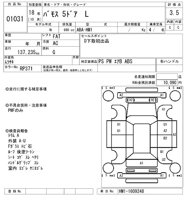 Honda VAMOS с аукциона Японии ARAI Oyama лот № 1031