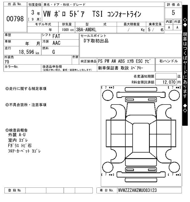Volkswagen POLO с аукциона Японии ARAI Oyama лот № 798