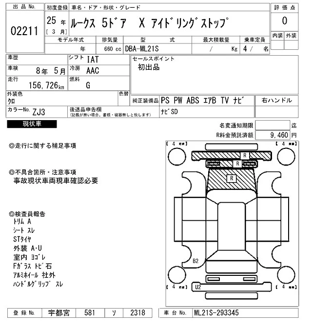 Nissan ROOX с аукциона Японии ARAI Oyama лот № 2211