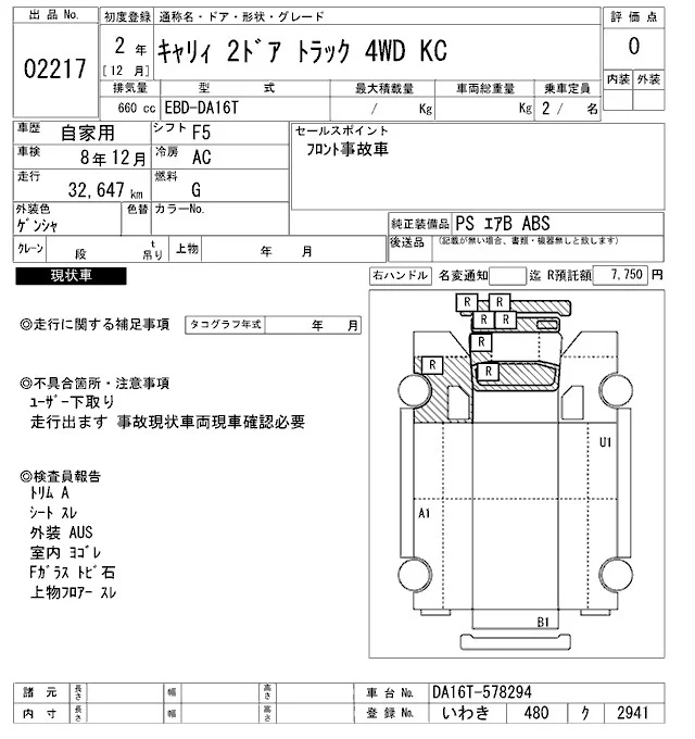 Suzuki CARRY TRUCK с аукциона Японии ARAI Oyama лот № 2217
