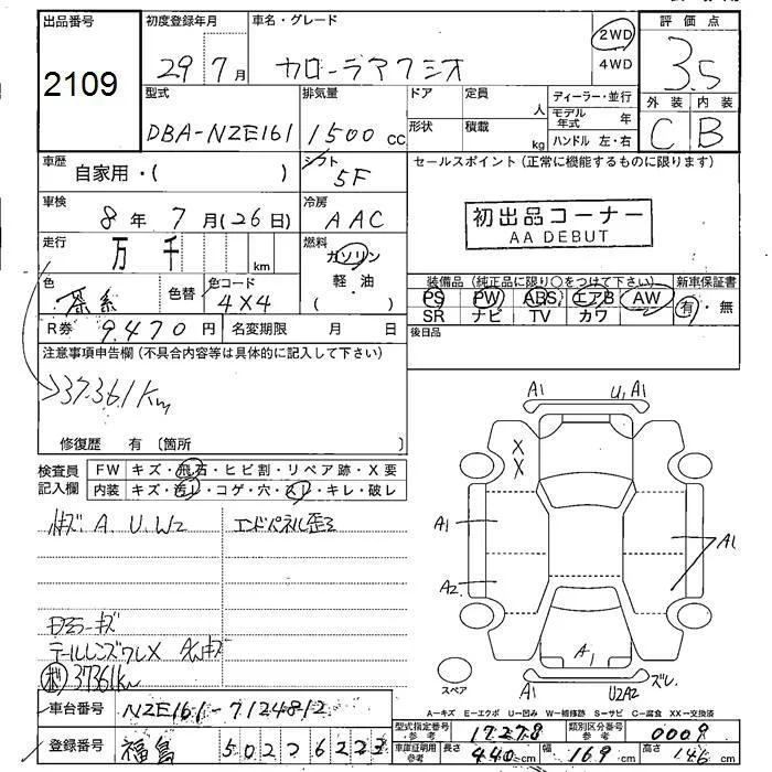 Toyota COROLLA AXIO с аукциона Японии JU Fukushima лот № 2109