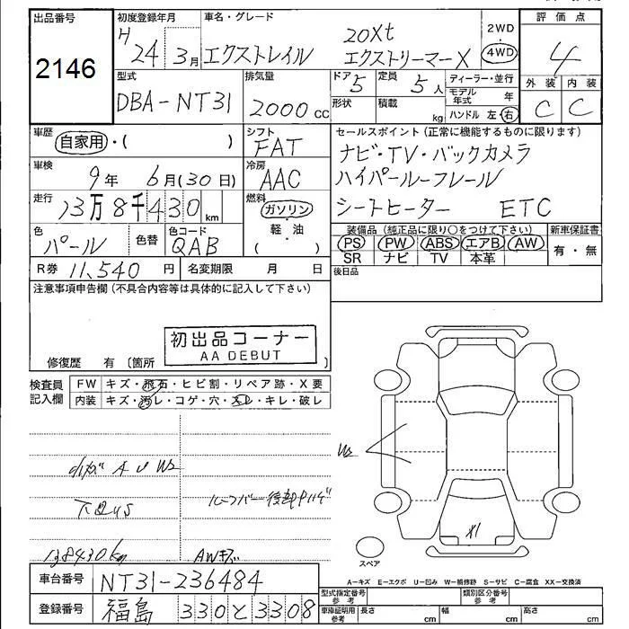 Nissan X-TRAIL с аукциона Японии JU Fukushima лот № 2146