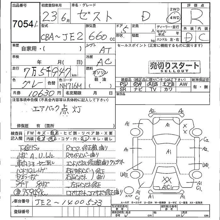 Honda ZEST с аукциона Японии JU Fukushima лот № 7054
