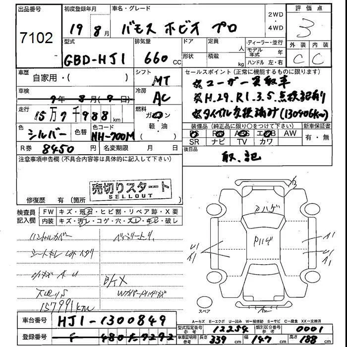 Honda VAMOS с аукциона Японии JU Fukushima лот № 7102