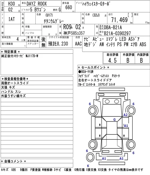Nissan DAYZ ROOX с аукциона Японии NAA Osaka лот № 3073