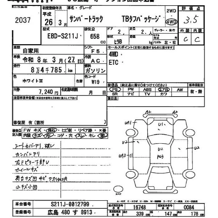Subaru SAMBAR с аукциона Японии JU Hiroshima лот № 2037