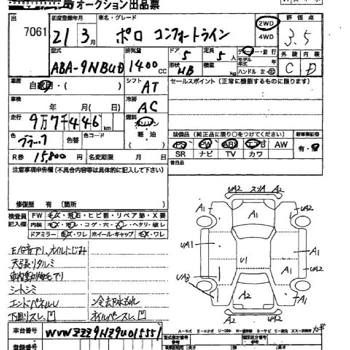 Volkswagen POLO с аукциона Японии JU Hiroshima лот № 7061