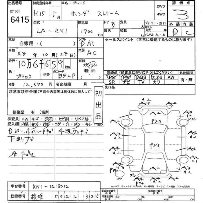 Honda STREAM с аукциона Японии JU Kanagawa лот № 6415