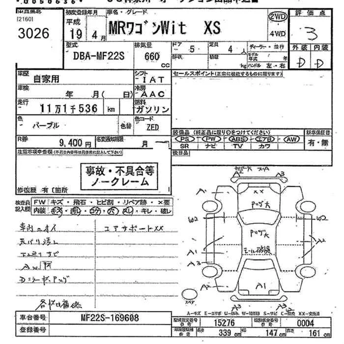 Suzuki MRWAGON с аукциона Японии JU Kanagawa лот № 3026