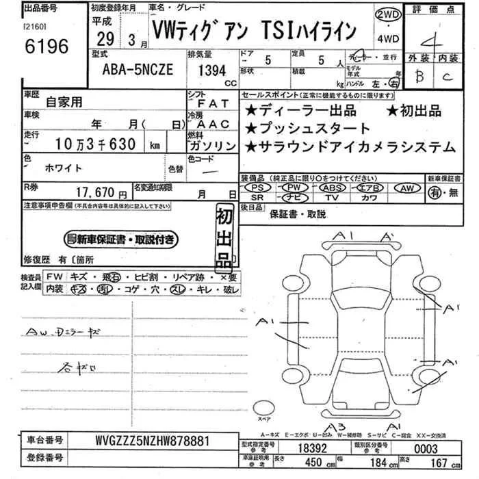 Volkswagen TIGUAN с аукциона Японии JU Kanagawa лот № 6196