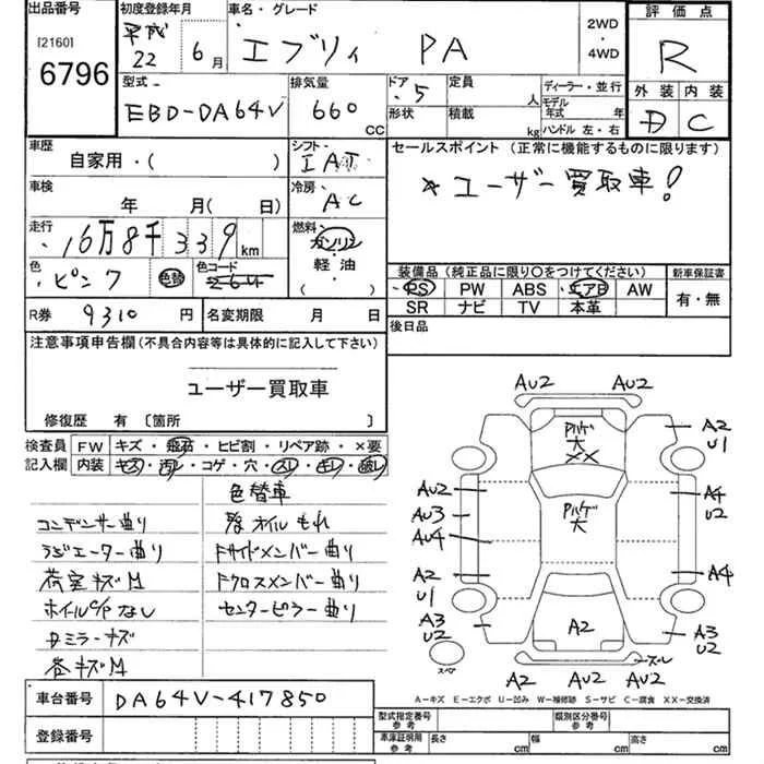 Suzuki EVERY с аукциона Японии JU Kanagawa лот № 6796