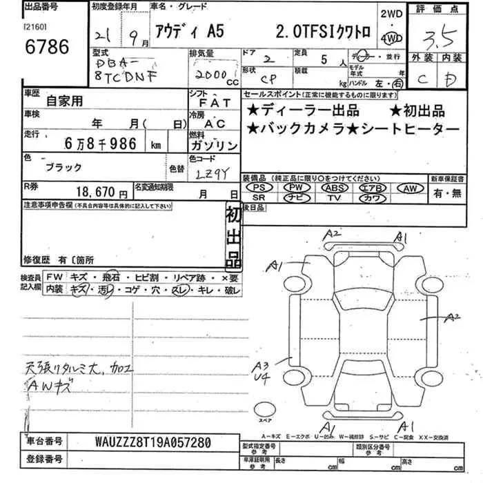 Audi A5 с аукциона Японии JU Kanagawa лот № 6786