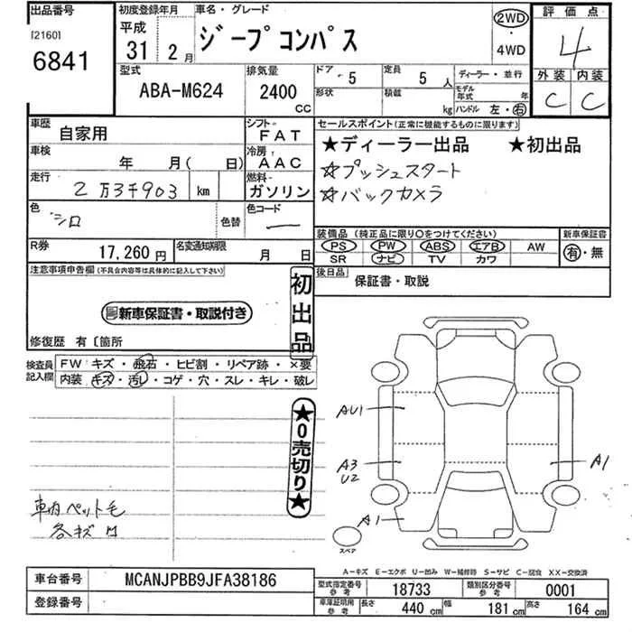 Chrysler JEEP COMPASS с аукциона Японии JU Kanagawa лот № 6841
