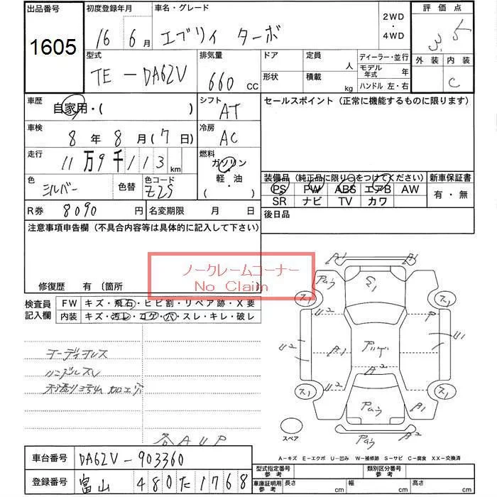 Suzuki EVERY с аукциона Японии JU Toyama лот № 1605