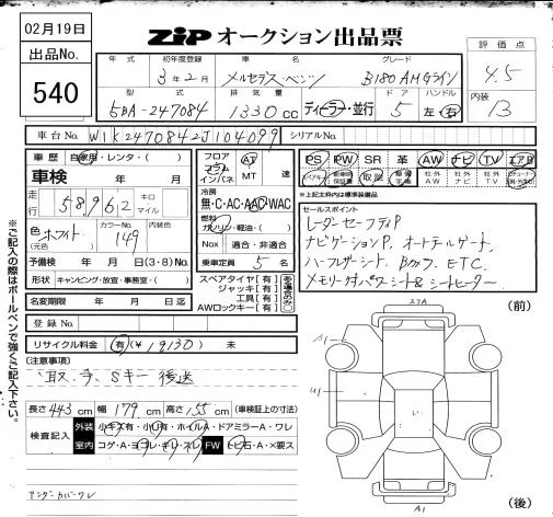 Mercedes-Benz B CLASS с аукциона Японии ZIP Osaka лот № 540